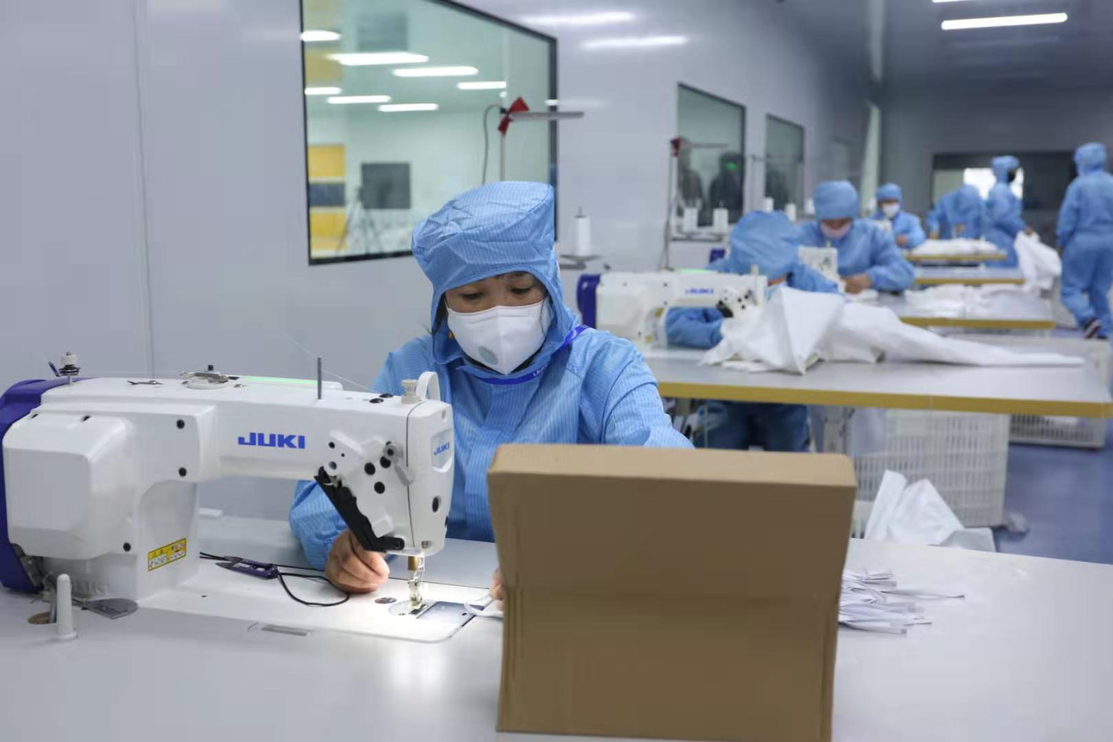 2月15日,j9国际站集团新引进的口罩生产线全力开动,正式出产医用口罩产品。据悉,该批5条生产线满负荷运转后,日产口罩约50万片。此前的2月4日,j9国际站集团联合晋江兴德织造有限公司启动了防护服生产,目前日均产能可达1000件。